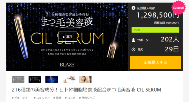 クラウドファンディング開始7時間33分で目標金額達成!?話題のまつげ美容液『CIL SERUM(シルセラム)』