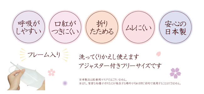 いざ写真撮影となると、マスクをつけたり外したりと忙しくなります。また、振袖を着ている時のバッグは小さく、フレーム構造のマスクなんて収納に困ると思いませんか?ところがこの樹脂製の独自フレームは折りたたんでも大丈夫なように工夫されており、簡単にしまっていただけます。
