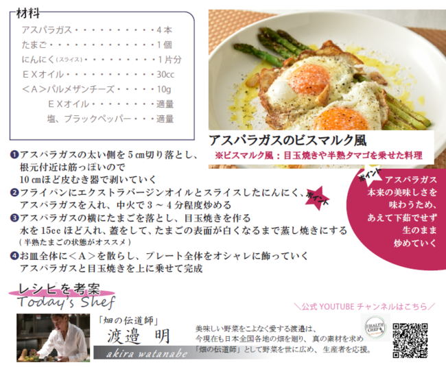 『青果日和』の定期宅配「青果BOX」で、“畑の伝道師”渡邉 明シェフのオリジナルレシピが届きます!ともに野菜にこだわる両者が野菜を通じて消費者により美味しく食べてもらいたい、という想いから実現。