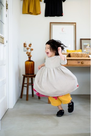 ハンドメイドのナチュラルリネンワンピース。背中にオリーブのウッドボタン付きです。カラーも豊富な7色展開。