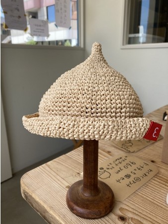 「ラフィア」という糸で編んだ麦わら帽子。水洗い可能なので、汗をかいたり水遊びをしても大丈夫です。