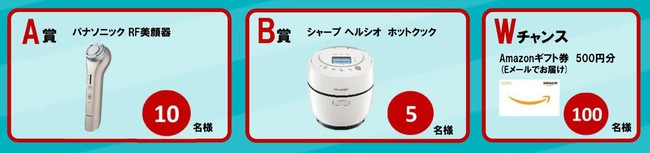 対象者 :応募いただいた方の中から抽選で合計115名様に下記の賞品を贈呈いたします。