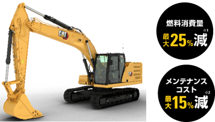 テクノロジーを標準搭載した20トンクラスの次世代油圧ショベル Cat320。2Dや3Dのテクノロジはもちろん、積込み量を正確に素早く計測するCatペイロードや、作業範囲を設定するE-フェンスなど、現場の効率化や安全作業を推進する油圧ショベルです。燃料消費量は従来機と比べて最大25%低減し、優れたパフォーマンスと低燃費を両立しています。