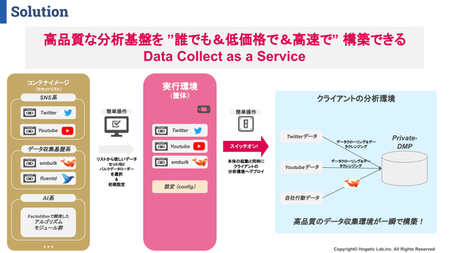 株式会社Hogetic Lab(ホゲティック ラボ)(本社:東京都世田谷区/代表:大竹諒/以下、当社)は、自社データとオープンデータの収集&統合に特化したData Collect as a Serviceの「Collectro(コレクトロ)」のα版をリリースしました。