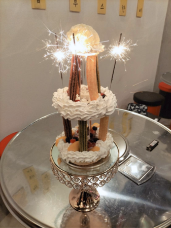 韓国のシンボル”ソウルタワー”をイメージした、全高60cmのオリジナルスイーツです。