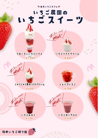 今後はいちご大福・いちごブリュレパフェなどの新メニューを提供していきます。