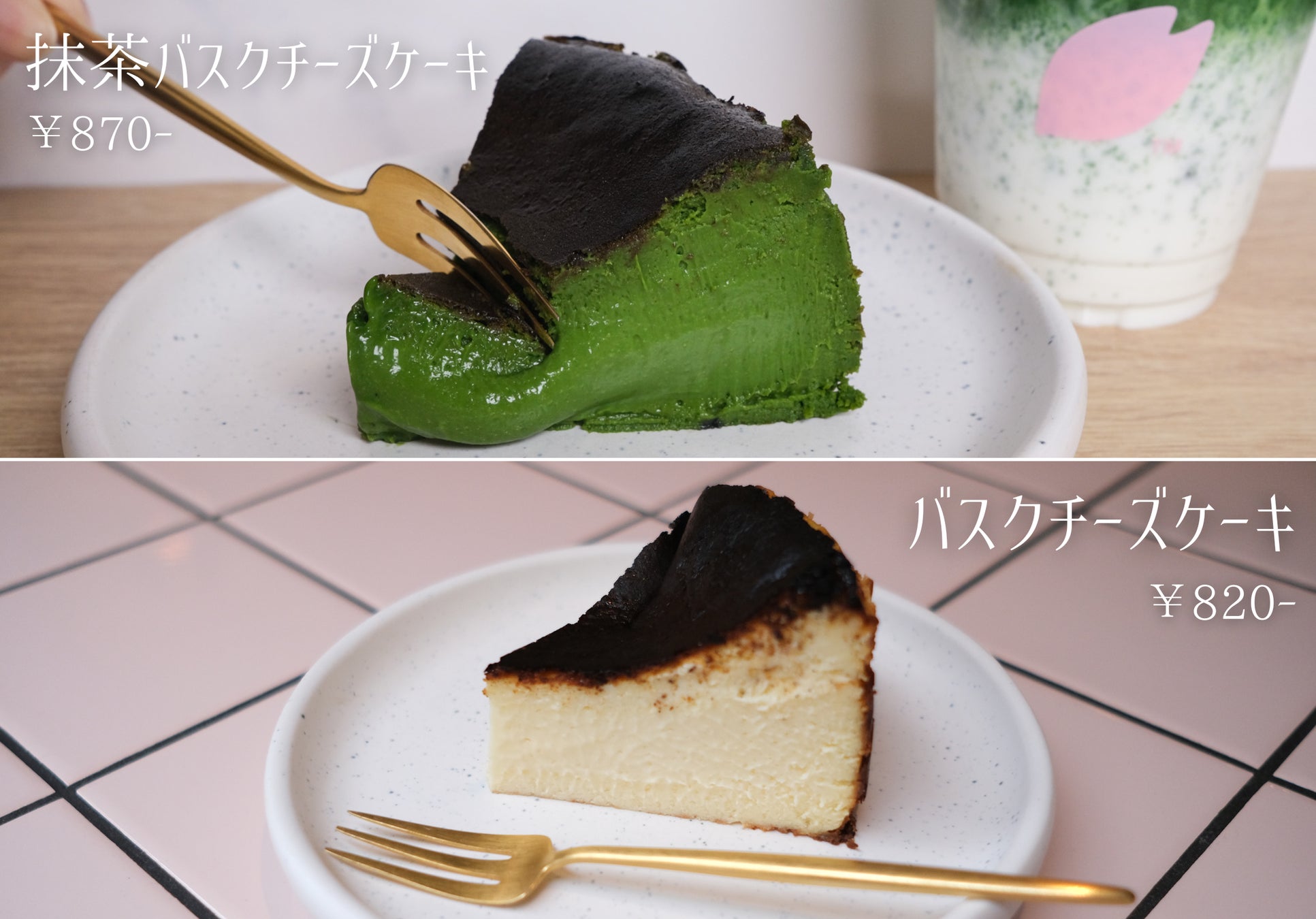オープン以来定番化しているバスクチーズケーキと抹茶のバスクチーズケーキもすべて自家製です。