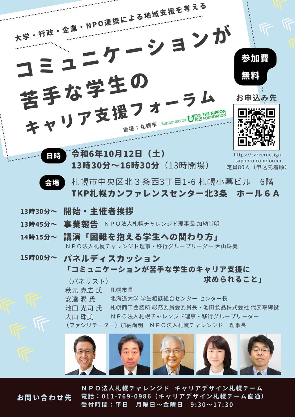 「コミュニケーションが苦手な学生のキャリア支援フォーラム」の開催について(札幌市開催)