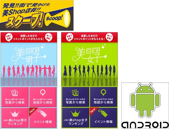 アプリ名:美Shop男子 ~イケメン店員検索~/ 美Shop女子 ~看板女子店員検索~