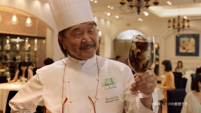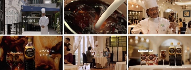 2013年9月に全面刷新した「ネスカフェ レギュラーソリュブルコーヒー」のTVCMでも日本を代表する有名シェフが続々と登場して話題になりましたが、「ネスカフェ ゴールドブレンド コク深め ボトルコーヒー」のTVCMでもフレンチの鉄人・坂井 宏行シェフが自信をもってご自身のレストランで提供している事実を伝える内容になっています。コーヒーの味わいや香りはもちろんのこと、アートのような見た目、涼しげな音、冷たい舌触りといった 五感で楽しめる「コク深ラテ」の魅力も坂井シェフ流の表現で伝えています。