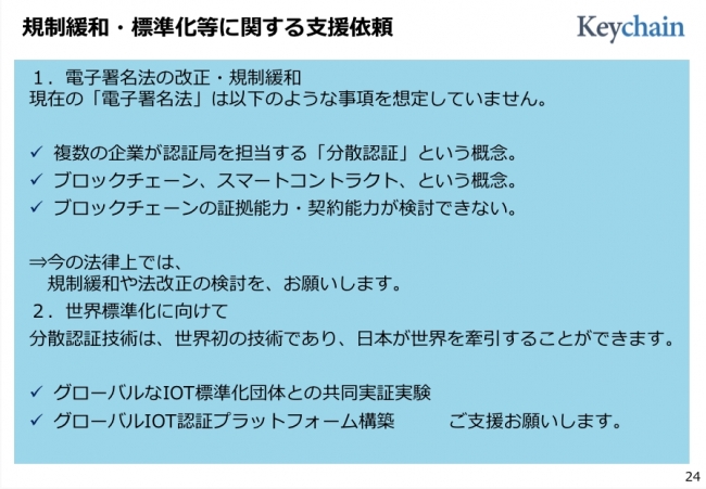 ■Keychainから「電子署名法に対する規制緩和・改正」支援依頼