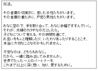 ◆妊活に向き合う男女間の距離を縮めるための“世界で一番あたたかい取扱説明書”
