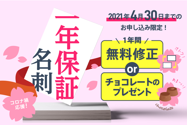 「一年保証名刺」キャンペーンを4月30日までの期間限定で実施します。