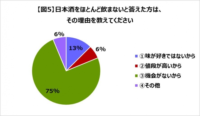 また、日本酒を「月に1回」もしくは「ほとんど飲まない」と答えた人は、日本酒が気に入らないわけでなく、「日本酒を飲む機会がない」為、日本酒を飲む頻度が少なくなっていることが判明しました。今後、日本酒の認知拡大が進むにつれて、外国人の日本酒需要も拡大していきそうです。
