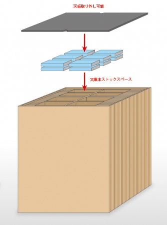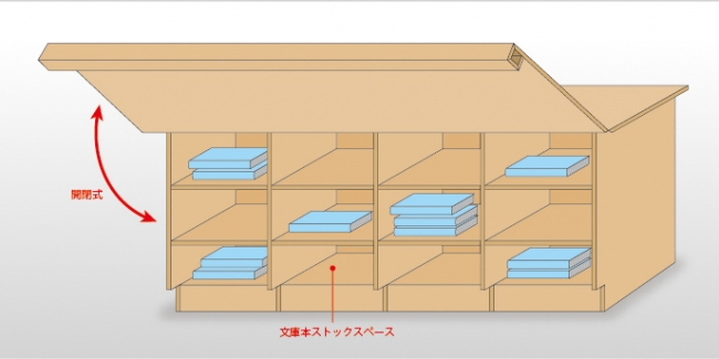 展示台の下は天板が取り外せ、文庫本のストックスペースになっています。