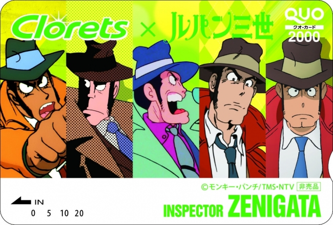 ※5 「クロレッツ」と『ルパン三世』コラボキャンペーンの歴代シリーズのキャラクターが描かれたQUOカードになります。