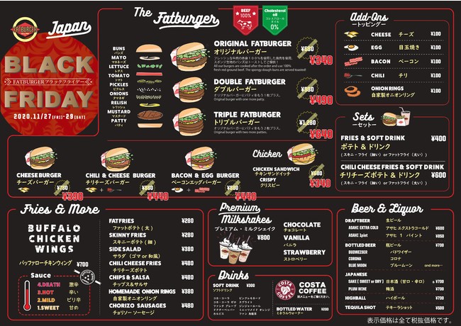 バーガー50%OFF!“ BLACK FRIDAY ” 開催!! LA発のグルメバーガー「FATBURGER」、11月27日(金)~29日(日)の3日間、極上バーガーを食べつくせ!