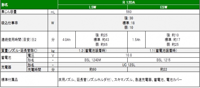 ※2 連続使用時間は蓄電池の状態などにより変わりますので目安としてください。