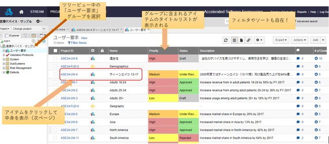 プロジェクトリーダーは仕様変更の要求に対するインパクトを分析し必要な工数を見積り、時には承認済みの競合要件を素早く見つけて提示する事で時間だけがかかって結局は変更要求を拒絶するという悪循環に陥る事をさせる事ができます。機能要件、安全要件、そしてセキュリティ要件が複雑に絡み合い開発中に変化を続ける今日の製品開発においてALM(Application Life-cycle Management)ツールは必須の物となりつつあります。ASEでは急成長過程にあるALMツールの市場において米国で多くの実績とシェアを誇るJama Softwareを日本に紹介する事により、国内メーカー様が製品開発プロセスをより包括的かつ完全に把握し、トレーサビリティを拡大出来る様に支援致します。