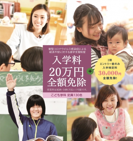 学校法人夙川学院(所在地:兵庫県神戸市、理事長:増谷 昇)神戸教育短期大学こども学科(定員130名)は、「新型コロナウイルス感染症による経済不安に対する進学支援制度」を設立しました。新型コロナウイルス感染症拡大により経済的な影響を受けている受験生への負担軽減を目的に、2021年度入学者全員を対象に入学料20万円全額免除をいたします。