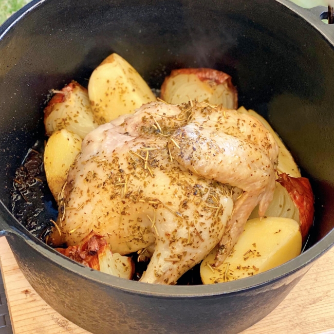 ダッチオーブンで柔らかく焼き上げたやんばるチキン