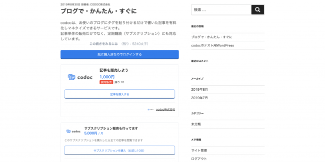 ブログで記事・サブスクリプション販売ができるcodocを開始