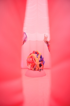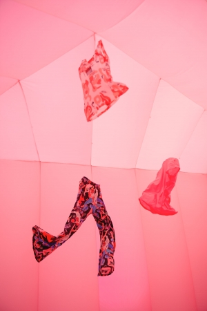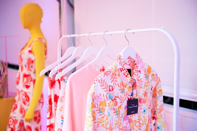 “eva.”は、女性器の形をした小さな入口より旧約聖書内の “アダムとエヴァ(アダムとイブ)” のエヴァの世界へ入ることができます。内側は全面ピンクの世界の柔らかい床の上に5人のカラフルな女性たちが絡み合う彫刻が現れ、彼女たちはミランダ・マカロフの2020 SSカプセルコレクションのアイテムを一部身に着けています。その周りにはまるで彼女たちが脱いたかのように本カプセルコレクションのアイテムが宙に舞っています。これは、実際に本コレクションでプリントされているヌードの世界を展示として再現しているのです。今回発表されたデシグアルとミランダマカロフのカプセルコレクションはマイアミのリンカーンロード店で先行発売されており、2020年春よりデシグアルストア 原宿と公式オンラインストアにて発売が予定されています。