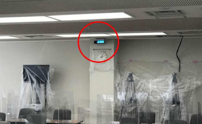 ▲大分市役所議会棟4階 全員協議会室に設置された紫外線照射装置「エアロシールド」