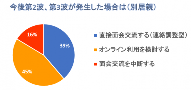 感染防止の観点から期待されているオンライン面会交流については、同居親の31%、別居親の45%が「利用を検討する」と考えており、約1/3の親子からのニーズが確認されました。