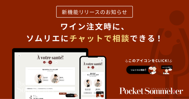 ソムリエが最適なワインをセレクトしてお届けするサービス『Pocket Sommelier(ポケットソムリエ)』が、リアルタイムでソムリエにワイン購入の相談ができる「ソムリエチャット」をリリース。