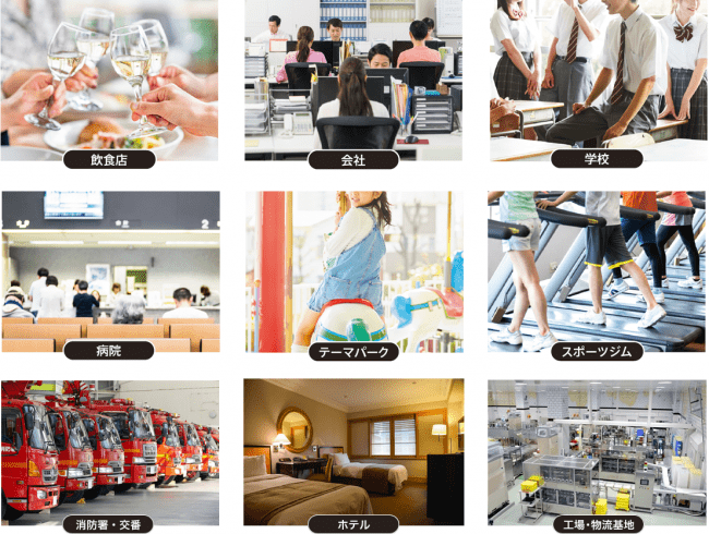 自治体などが運営する避難場所、店舗レストラン、オフィス、学校、医療・介護施設、公共施設、公共交通機関などさまざまなコミュニティでご活用できます。