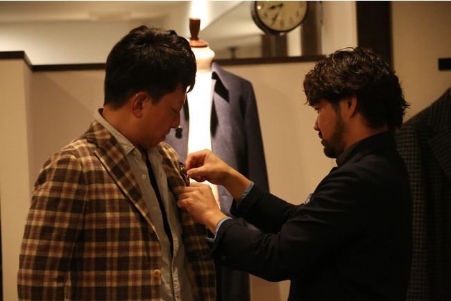 店内の脇に目をやると、そこにはジャケットやスーツに使う生地が豊富に並べられている。さらに奥に目をやるとサングラスや小物も並んでいる。