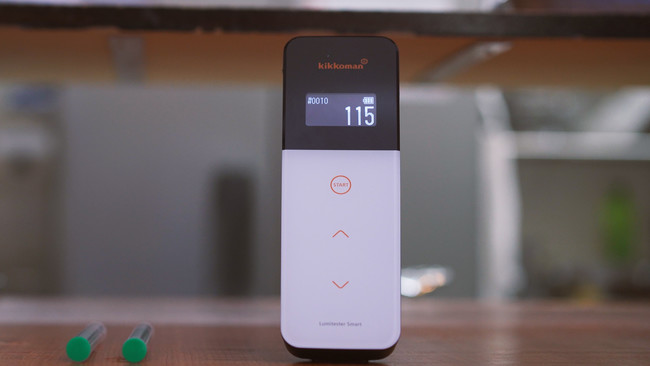 安全測定サービスで使う製品は、医療現場やレストラン、給食施設、食品工場などで使われており、人の目では確認できない汚れや残留物を、3つの簡単なステップ「ふき取り / 測定 / 分析」で検査結果の確認、数値化ができます。