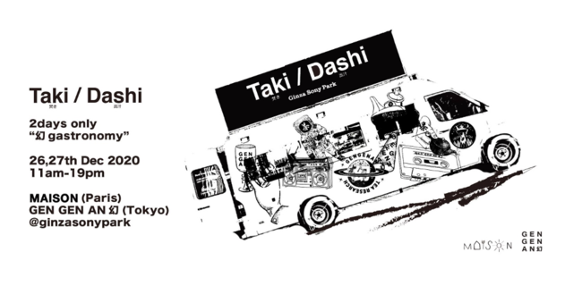 「GEN GEN AN幻」は、パリの名店「Maison」渥美創太シェフとコラボレーションし「菓子と茶」をテーマに、渥美シェフが主宰するプロジェクト「tometto」が開発したガトーバスクやアイスなどを提供しています。今回は年末の特別企画として「Taki-dashi」をテーマに、渥美シェフ自らがフードトラックに立ち、2日間だけの特別なオープンサンド、温かいオニオングラタンスープ、焼きたてのゴーフルを提供します。