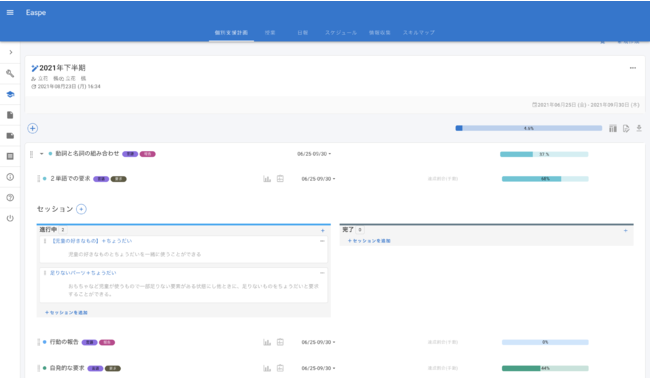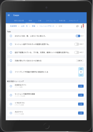 株式会社Easpe(本社:大阪府大阪市、代表取締役:平塚智博)は、障害児通所施設向けの業務改善プラットフォームであるEaspeモニタリングシステムにて「トレーニングセット機能」を追加いたしました。これにより、中期の計画管理と、記録の一括入力がより簡単に可能になります。