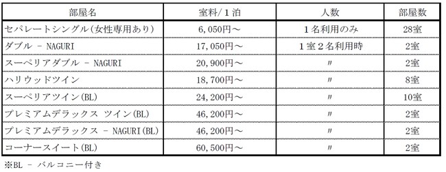 客室ももちろんカジュアルから気取らないラグジュアリーまでと様々で、一人旅に便利な半個室タイプの客室「セパレートシングル」から、UNO HOTELのスタンダードな客室「ツイン」、日本古来の加工技術「名栗」が床に施されている「プレミアムデラックス - NAGURI」、そして高級感漂う「コーナースイート」など全56室(うち16室はオーシャンビュー/バルコニー付き)をご用意いたしました。