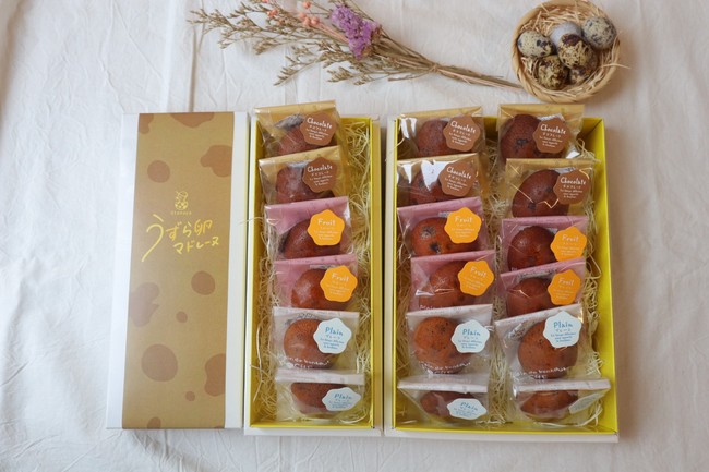 東日本シェアNo1うずら卵農場直営、うずら卵形のマドレーヌが登場!バターの香りがふんわり プレーン・チョコ・フルーツ3種類