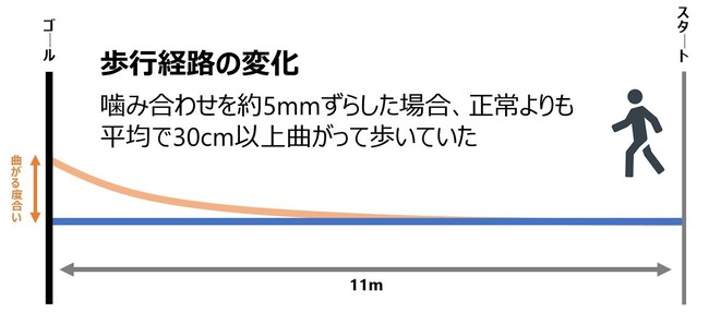 また、奥歯が噛めない状態だと、背筋力が弱いという報告があるほか、あごの位置がずれている人、噛み合わせる歯の数が少ない人、何らかの不正咬合がある人は直立時のふらつきが大きく、反対にそれらを改善すると、ふらつきがなくなるというデータもあります。