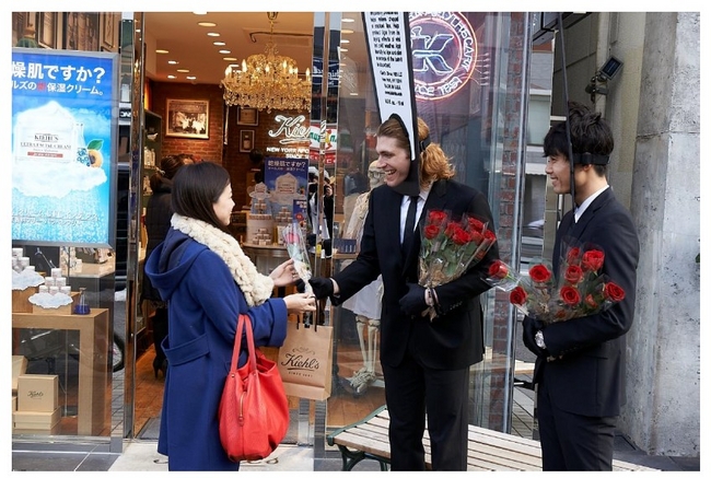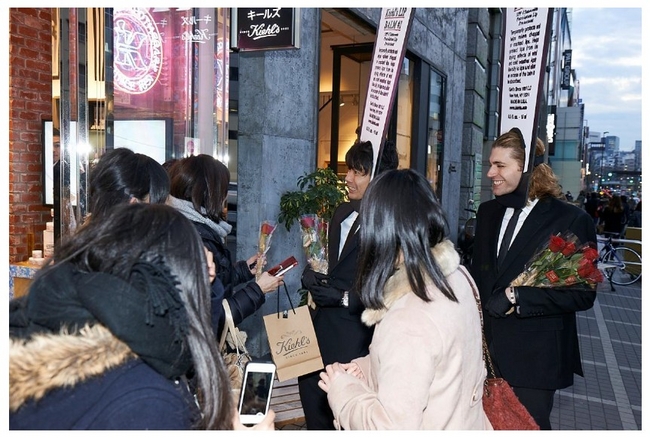 2月12日、キールズ原宿店には、当日限定の ユニット「キールズ リップバームズ」が登場し、来店・購入されたお客様にバラをプレゼントするキャンペーンを行いました。