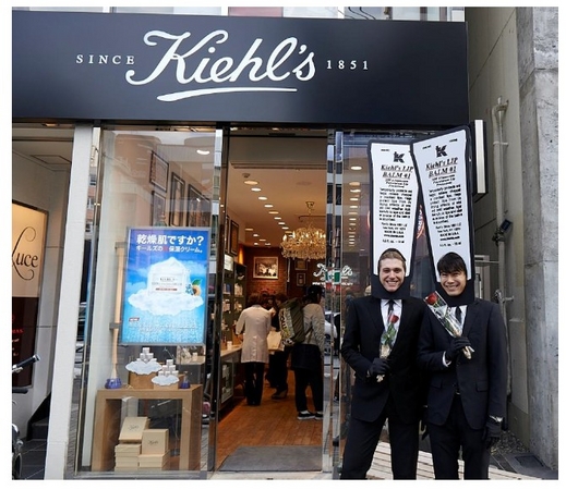 当日、「リップバームズ」を務めたのは、役者・モデルとして活躍する塩口量平、そしてモデルのクリス・マッコームス。イケメンからの思いがけないプレゼントに、キールズを訪れた女性は大喜びの様子でした。
