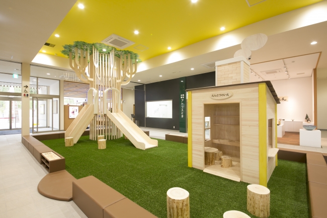 中央に設けられたキッズスペ ース「なんじゃもんじゃ広場」では岐阜県産ヒノキ製の