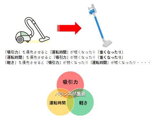 日本の家屋のお掃除を想定し、『吸引力』『運転時間』『軽さ』の最適化を図り