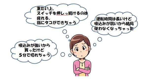 「運転時間は長いけど吸込みが弱いから結局使わなくなっちゃった」