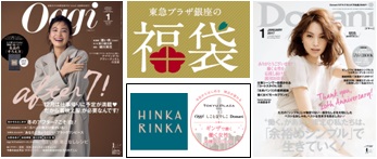 また各種新春イベントも開催。2017年注目の福袋は、小学館の人気ファッション誌『Oggi』、『Domani』とコラボレーションした、働く女性のためのアイテムを揃えたスペシャルな福袋です。東急プラザ銀座は、2016年10月より小学館の『Oggi』、『Domani』、WEBメディア『しごとなでしこ』とのコラボレーション企画『今日からはじまる 明日が変わる ギンザで磨く働く女性応援プロジェクト』を通して、ファッションを中心に働く女性が新しい“自分らしさ”に出会える場を創出し、新しい働く女性のスタイルを提案しています。今回の福袋は、本プロジェクトの一環として、東急プラザ銀座3階~5階に位置する新しい大人のファッションを提案するセレクトストア「HINKA RINKA」と、『Oggi』、『Domani』がコラボレーションしました。合計8種の福袋は、シーン別のコーディネート提案や、バリエーション豊富にアレンジを楽しめる小物のセットなど、それぞれのテーマにあわせて働く女性のオシャレを応援するお得でプレミアムな福袋です。