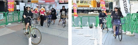 ▼両輪駆動の電動アシスト自転車を体験してもらう試乗会の様子