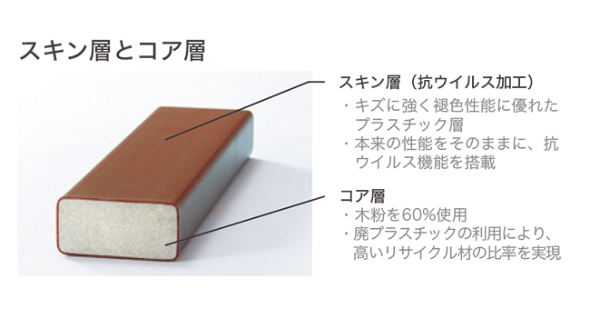 RekwoodⅡのスキン層に抗ウィルス加工を施しました。RekwoodⅡの性能そのままに抗ウィルス機能を搭載