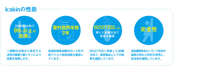 k:skinは独自技術により表層の樹脂層に抗ウィルス加工を施し、屋外環境に適した全く新しい再生木材です。「屋外での衛生対策として何をしたら良いかわからない」「少しでも衛生的な屋外環境を整えたい」。そのような皆さまのお悩みを解決するべく、本製品の発売を通じて、コトブキはより衛生的で快適な空間づくりをご提案いたします。
