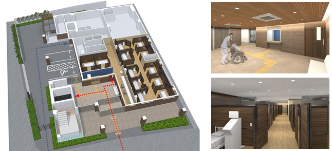 従来は狭いスペースのため車いすの移乗介助が困難でしたが、ゆったりとしたスペースを確保