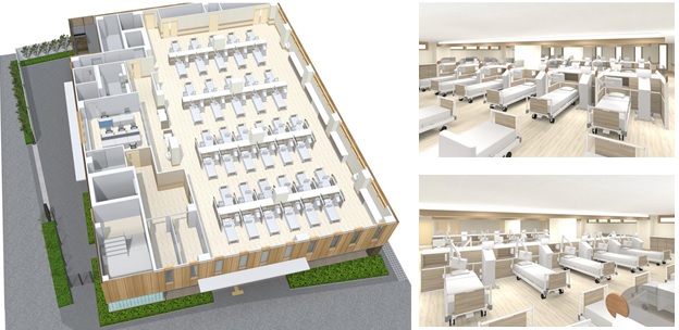 ベッド配置やレイアウトなどが変更できる。規模や機能の変更にも対応可能なパーテーション設備を採用