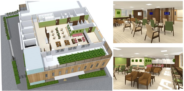 病院の「待合室」のイメージをなくし、「新緑の木々に囲まれた和モダンな空間」をコンセプトに